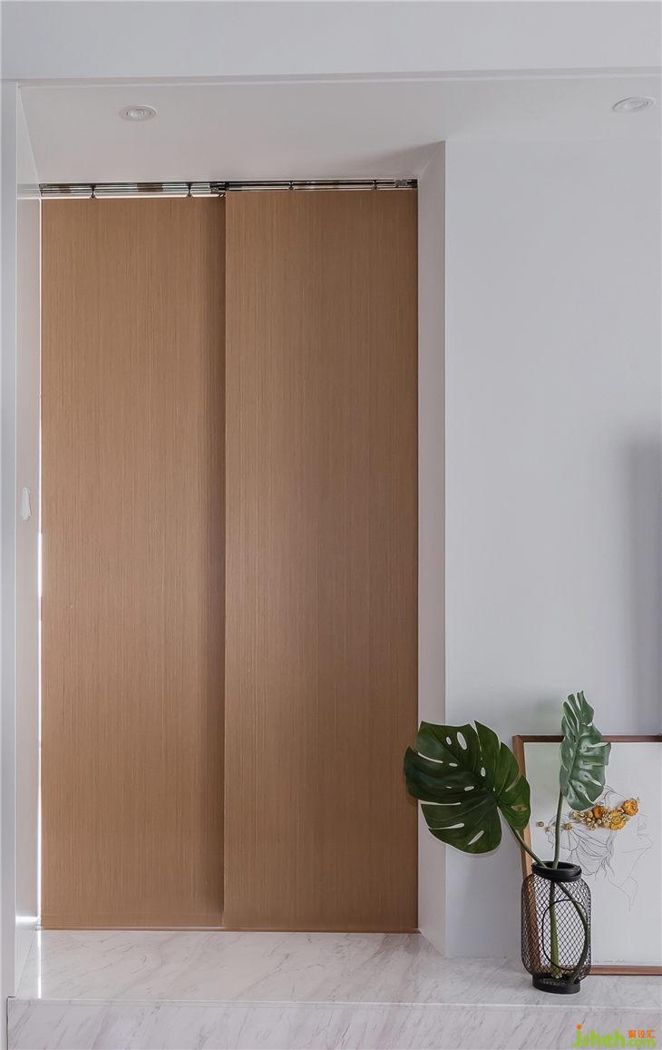 考慮到戶主工作的特殊性,窗簾采用了風琴簾,陽光通過風琴簾照射進來光線更加柔和,創(chuàng)造了良好的工作氛圍。