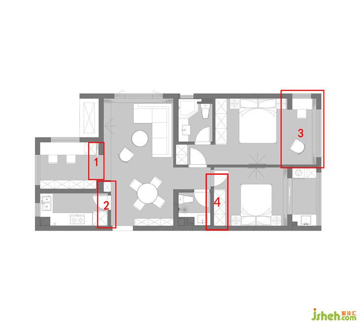 4.是把次臥的墻體往次衛(wèi)的方向挪動(dòng)了,在次臥增加了衣物收納柜。