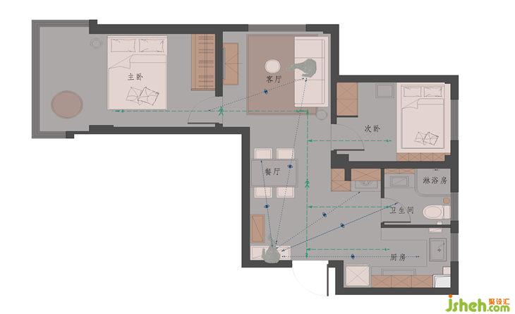 1.廚衛(wèi)的區(qū)域是重點(diǎn)改造對(duì)象,無論是空間使用,光和通風(fēng),生活動(dòng)線方面均是不舒服的。所以對(duì)這邊的區(qū)域考慮墻體重新改動(dòng),水路和方案重新進(jìn)行布置。
