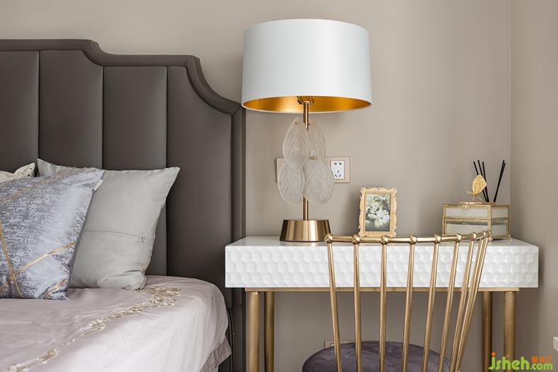 主臥用淺灰色墻面做背景,再用不同深淺的灰色讓畫(huà)面動(dòng)起來(lái),加入少許金色調(diào)劑,床品與擺件帶來(lái)高級(jí)感,臥室去繁從簡(jiǎn),歸于平靜。