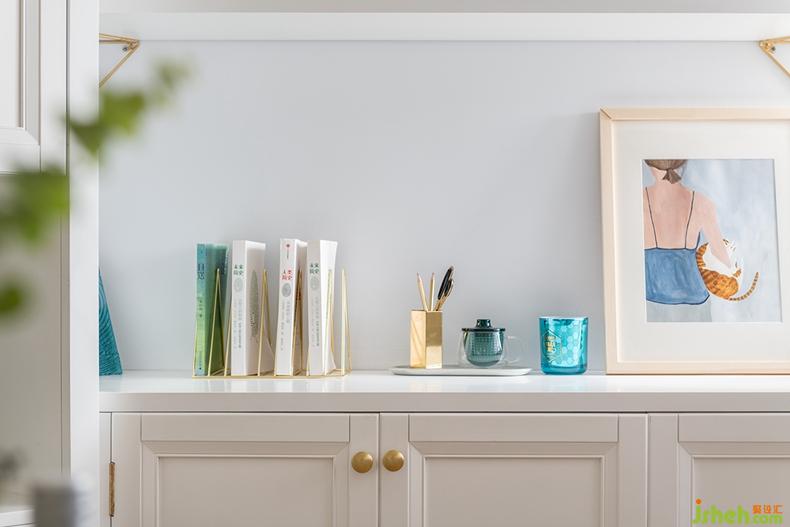 書桌與餐廳相鄰互不干擾,大面積白色帶來明澈柔和的感受。書柜充分發(fā)揮收納實用功能,填滿主人與雙胞胎女兒的幸福生活軌跡。