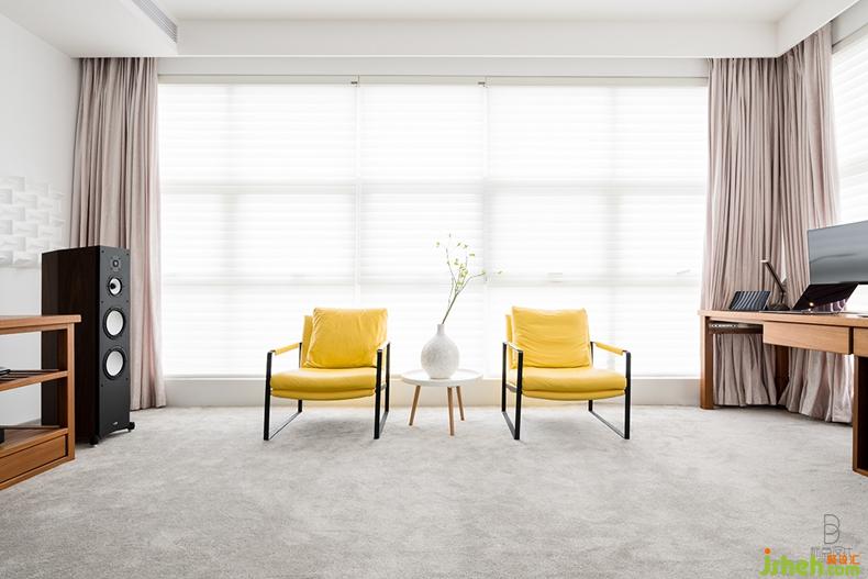 閱讀空間相比客廳更為跳躍、活潑些。木制家具,溫柔的亮黃色椅子相結(jié)合,在克制中流露出浪漫與熱情,透著卡布奇諾的香醇,在晴日陽(yáng)光的午后,感知音樂、書籍。別墅裝修設(shè)計(jì)