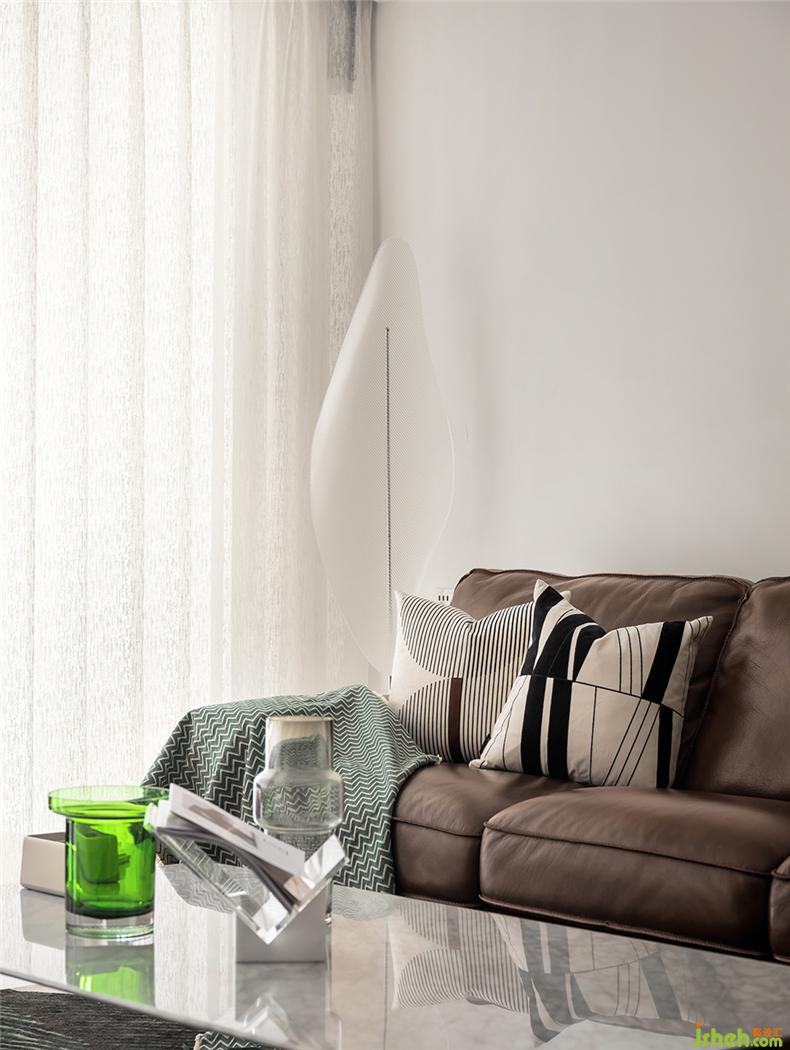 設(shè)計(jì)以白色為主調(diào)亮空間,并通過(guò)客廳、兩側(cè)開(kāi)窗最大限度的引入自然光,開(kāi)合之間,風(fēng)也能自由游走,解決了原始格局采光、通風(fēng)較差的問(wèn)題;