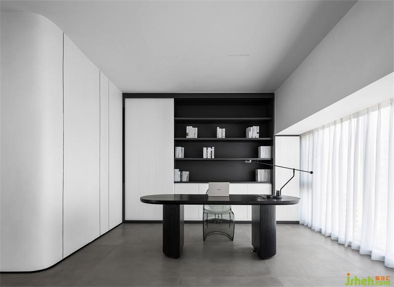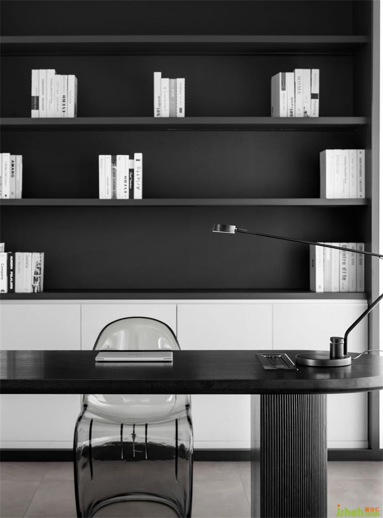 With black infiltrating into the main tone of the study, the two extreme colors mix, to mark the special zone and add a sense of calm rationality. The simple and elegant design will not disturb thinking or the atmosphere of creation.