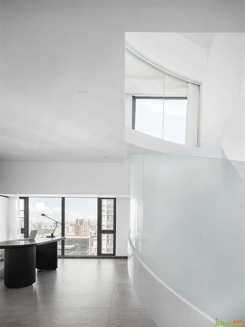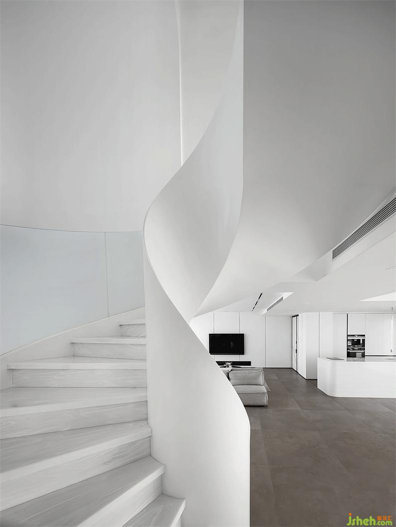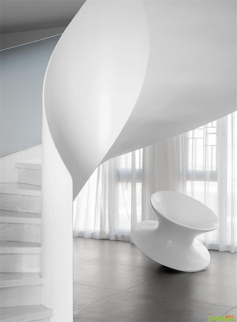 扶梯而上,流動(dòng)的曲面,回應(yīng)無(wú)限的自由和遐想,極具雕塑感的設(shè)計(jì),不僅解決了維度的局限性,室內(nèi)設(shè)計(jì)師也鏈接著建筑美學(xué)的詩(shī)意和生活,隨著距離和時(shí)間的改變,光影也隨之變幻,然后,遇見(jiàn)……