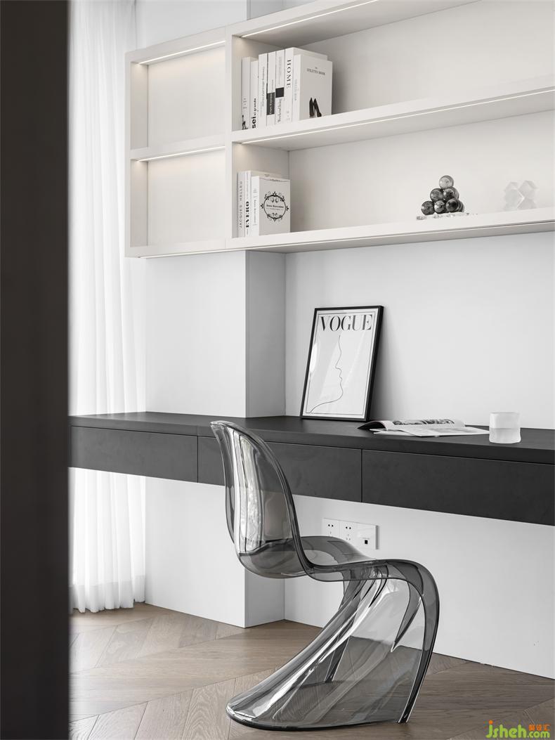白色主調(diào)的簡(jiǎn)約依然是空間狀態(tài),但內(nèi)容也更加豐盈了,室內(nèi)設(shè)計(jì)師線條的連續(xù)性,勾勒優(yōu)雅,借由藍(lán)色、綠色,讓窗外與室內(nèi)自然交融,呈現(xiàn)次臥的舒適溫馨。