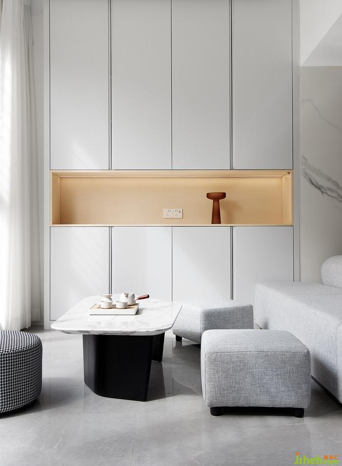 深圳家裝設(shè)計魚肚白的巖板做為樓梯踏步,簡約而大氣。
