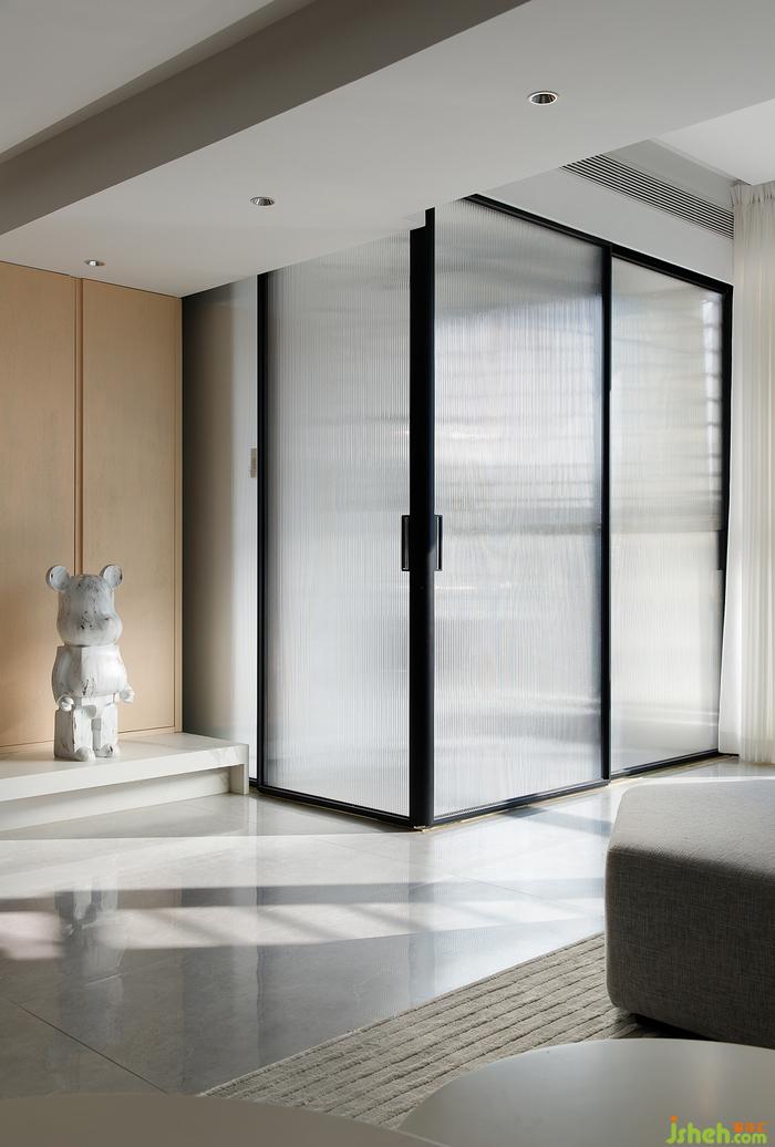 我們把陽臺分為兩個功能來使用,一是滿足家人需洗衣與晾曬的功能,二是家人的喝茶區(qū)域。深圳家裝設(shè)計在這個家里洗衣房的區(qū)域,我們用可開可合的長虹玻璃來與客廳做一個隔斷,平時晾曬衣物的時候關(guān)上玻璃門,也不會顯得客廳空間凌亂。