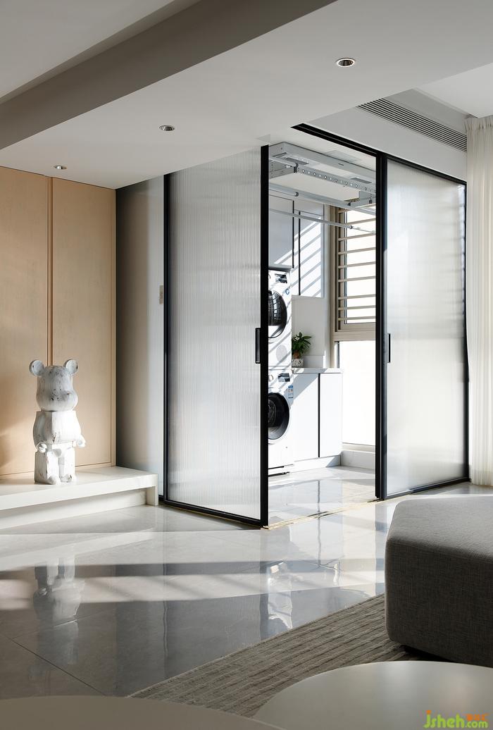 兩邊靠墻的位置都設置了整排收納柜,滿足日常的收納功能。