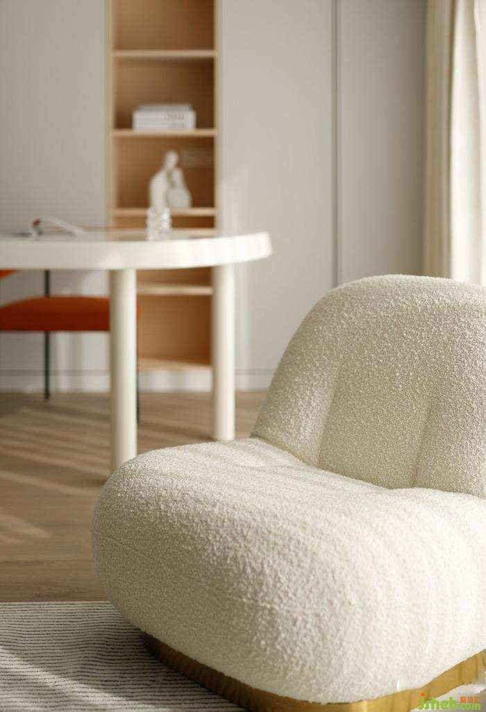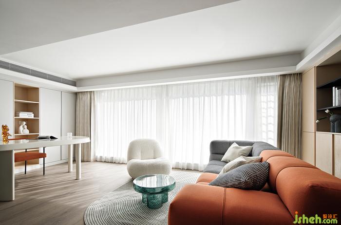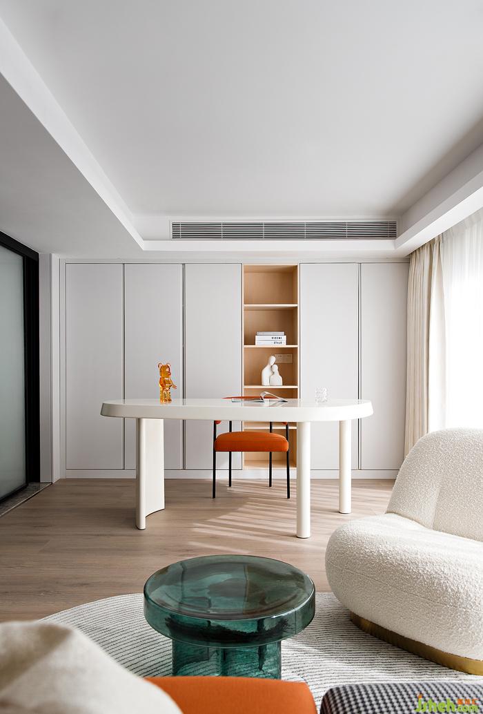 陽光透過窗紗落下,這里成為了主人最喜歡的居家角落,辦公、閱讀都能讓人心生愉悅。深圳家裝設計白色、原木色、橙色三色融合打造出這個溫馨空間。