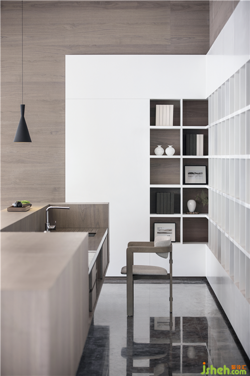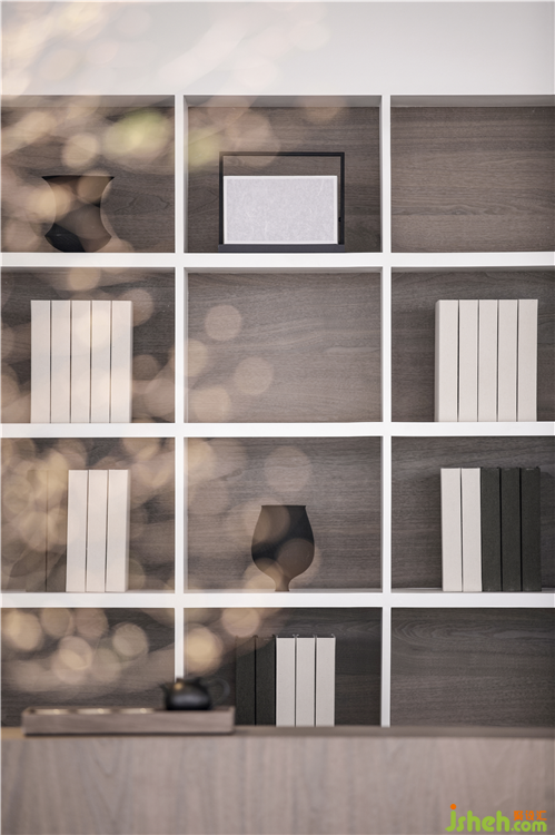 細節(jié)的詮釋,是恰到好處的精致。詩書、墨壺、畫框靜默于書架盒子,文雅之風在此蕩漾。
