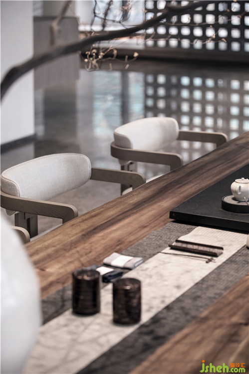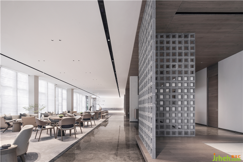 下沉式結(jié)構(gòu)會所設(shè)計,一隅自成天地,光火明暗之間,似隔非隔的“墻”,隱約、朦朧間透著幾縷東方的詩意。