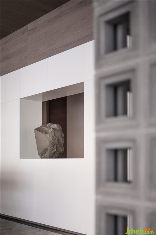 A reading area is done by sunken structure. Between the light and shade and through the "pane wall", it reveals a few wisps of Oriental poetry faintly and hazily.