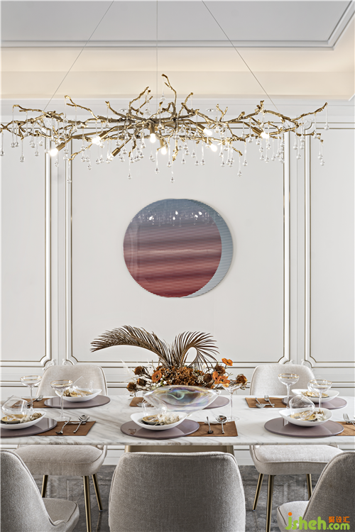 別出心裁的金屬藝術(shù)吊燈,與浪漫的法式花藝惺惺對語,仿佛置身于巴黎香榭麗舍下的樹蔭,追逐內(nèi)心的自由向往。