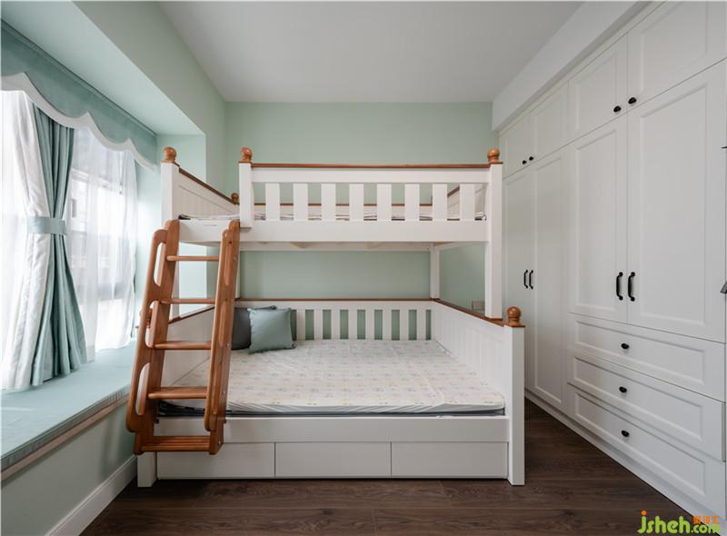 考慮到小朋友的成長(zhǎng)需求,主色調(diào)再用于兒童房就不是很合適,所以兒童房的色調(diào)換成淡綠,小清新。室內(nèi)設(shè)計(jì)師