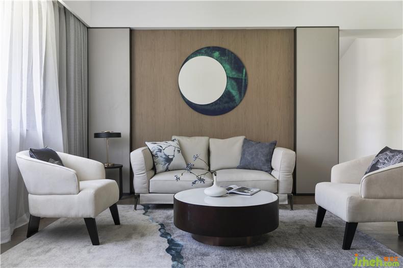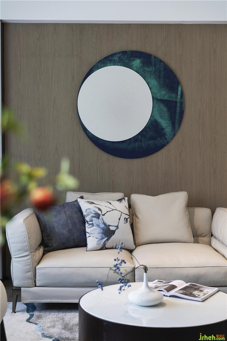 二樓在一樓的基礎(chǔ)上由于茶臺的加入多了幾分禪意,別墅裝飾首先客廳是一個待客洽談的區(qū)域,用餐后三兩好友邊喝茶邊暢聊人生的往事度過一個閑適的午后。墻面背景的圓形掛飾意味著天人合一,美好圓滿。