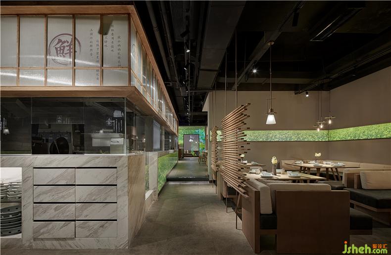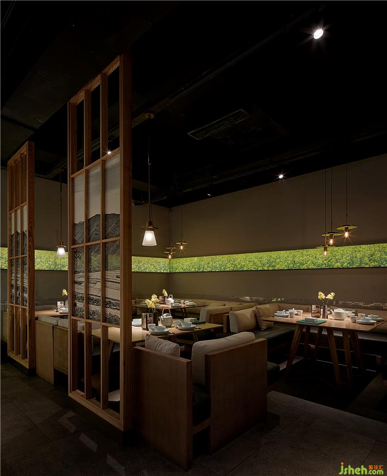 開(kāi)放式明檔是店內(nèi)重要的展示舞臺(tái),每一個(gè)灶臺(tái)的廚師都是主角。上方的紗幔上“鮮、熱、真、火、快”五個(gè)大字映入眼簾,道出衡陽(yáng)小炒功夫的精髓。明黃色的吊燈組渲染干凈溫馨的餐廳氛圍,而蒸騰的鍋氣試圖喚醒你回憶里故鄉(xiāng)的裊裊炊煙,廚師烹飪過(guò)程一覽無(wú)余,菜籽油混合小炒肉的香氣撲鼻而來(lái),塑造出餐廳的獨(dú)特氣息,勾人食欲,餐廳設(shè)計(jì)使食客可以充分領(lǐng)略到衡陽(yáng)小炒“食”與“境”的美妙關(guān)系。
