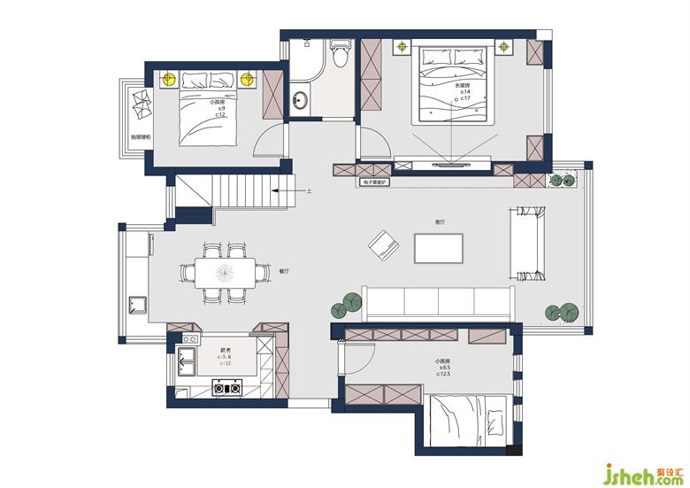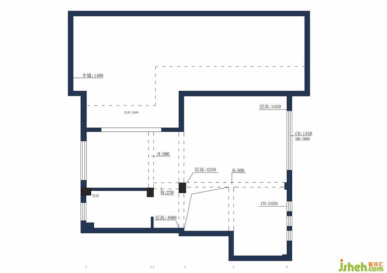 二層面積為45平方,樓梯的定位依然是本次設(shè)計(jì)的重點(diǎn)。
