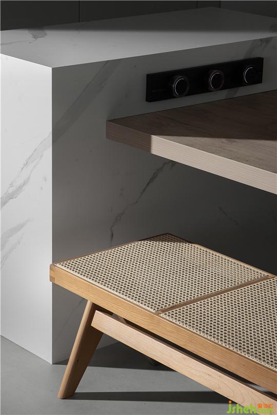 空間原始結(jié)構(gòu)為兩居室空間,客餐廳為長廳,洛陽裝修設(shè)計在研究承重結(jié)構(gòu)后,對原始結(jié)構(gòu)進(jìn)行了大面積的改造。由于客廳及陽臺景色為洛河光景,我們就拆除了一個臥室與客餐廳打通,來增大采光和景觀面。同時,考慮到業(yè)主一人居住,工作日均在單位就餐,只有周末偶爾做一些簡餐,所以我們將中廚和衛(wèi)生間縮小,增大公共空間面積,保留了一間大臥室;而在客廳區(qū)域,我們摒除常規(guī)會客沙發(fā)擺放形式,以地臺結(jié)合坐墊靠包的靈活方式,滿足不同場景下的生活格局;在靠陽臺的部分,我們空出大量面積,凸顯空間的開闊性,賦予空間無限可能:女主人可以健身、瑜伽、觀影、看書,坐,臥,行,走,均可達(dá)到無拘無束的自由品質(zhì)空間狀態(tài)。