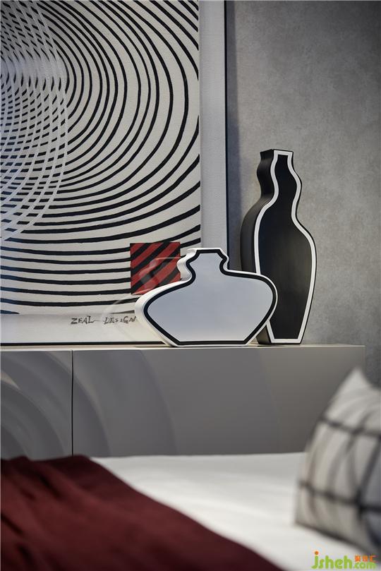 空間承載著我們對于生活,對于家,對于心中凈土的期許。本次項(xiàng)目更是如此,多元化的使用階段,代表著空間的共融性,而針對空間主要使用者業(yè)主的特性上,我們大膽突破,從布局到色彩,從選材到藝術(shù),我們力求做到極致。整體作品就像一副藝術(shù)畫作,淡淡的筆觸打底,素色空間干凈整潔,不嬌柔不造作,如清流過膝,不著痕跡;繼而筆墨漸濃,意境漸生,意大利經(jīng)典家具搭配組合,從客餐廳到臥室,基調(diào)完整和諧,輪廓初成;再來就是黑白經(jīng)典配色的原創(chuàng)地毯和原創(chuàng)畫作,將空間藝術(shù)氛圍推向極致;而最后那一點(diǎn)姣紅,如畫龍點(diǎn)睛,暈染荷塘,空間氣質(zhì)躍然紙上。