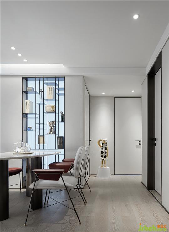 選材在滿足設(shè)計(jì)需求的前提下,著重從環(huán)保和經(jīng)濟(jì)等方面著手。洛陽(yáng)家居設(shè)計(jì)地面除衛(wèi)生間廚房生活陽(yáng)臺(tái)外,整體選擇多層實(shí)木地板通鋪,增大空間延伸感和視覺感,淺木色的顏色也在采光相對(duì)較差的空間中有提亮空間的效果;大面積墻面選用米灰色肌理壁紙,純色的壁紙,搭配一定紋路的肌理,讓空間干凈整潔,同時(shí)又更有質(zhì)感;全屋創(chuàng)新性的采用極簡(jiǎn)窄邊框門,游艇板材結(jié)合優(yōu)質(zhì)鋁制金屬框架,線條感極強(qiáng)的門框搭配白色的門板,與墻體結(jié)合成一平面,設(shè)計(jì)感極強(qiáng)。通電玻璃的選用也極具創(chuàng)意,滿足空間通透性和縱深性。