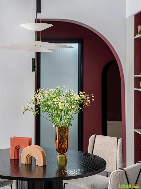 “可愛一點沒關(guān)系,但是不要太脂粉氣?!彼?,黑色木紋餐桌簡直是粉色空間里最不可或缺的一件配飾了。