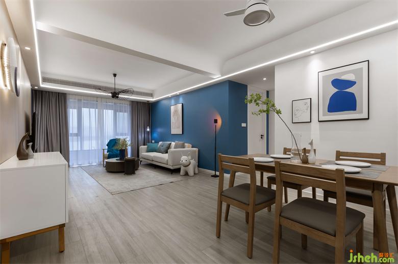 業(yè)主喜歡藍色元素,裝修設計主題基調(diào)以藍色為主。團隊結(jié)合業(yè)主的想法,打造一個回歸生活本質(zhì)、身體和靈魂能得到真正氣息的生活場所。在此可以遙立于世,暫時遠離喧囂,來一場心靈的放空之旅。裝修設計