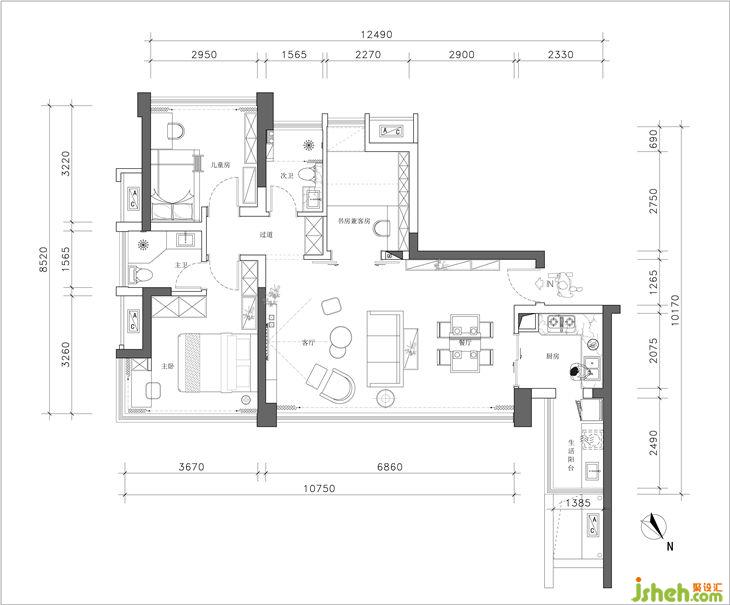 根據(jù)業(yè)主習(xí)慣,性格及喜好,硬裝上以簡(jiǎn)單的黑白灰三大塊色系構(gòu)建,家具用原木色襯托,軟裝上運(yùn)用質(zhì)感強(qiáng)、色彩明亮的配飾相碰撞。在整個(gè)柔和的大空間中,明亮的顏色給家?guī)砹嘶钴S的視覺感受。