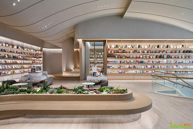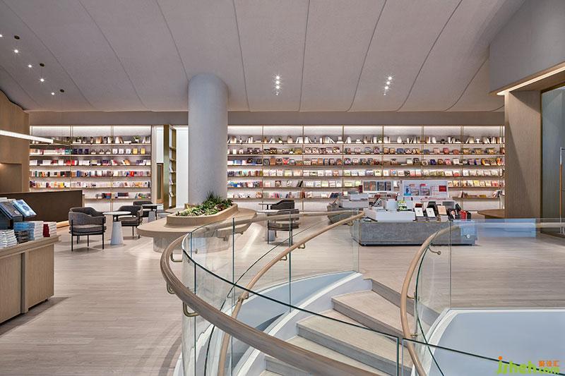 寬敞而通透的體量,為不同類型的書架提供充裕的空間,原木色書架和中島書柜打造濃厚文化氛圍。