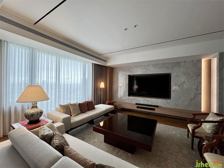 在公領(lǐng)域區(qū),將客廳.餐廳.廚房及休息區(qū)等空間,排布在橫向軸線上,營造出空間的景深,也讓雙向空氣陽光能夠流通在每一個角落,廚房二側(cè)的門片設計,豪宅設計滿足開放或私密的需求,視覺上也讓整個公領(lǐng)域空間得以無限延展,將二邊窗外風景盡收眼底,每當黃昏,從窗外撒下的夕陽余暉,照映在室內(nèi)的實木地板上,反映出家的溫暖與舒適。