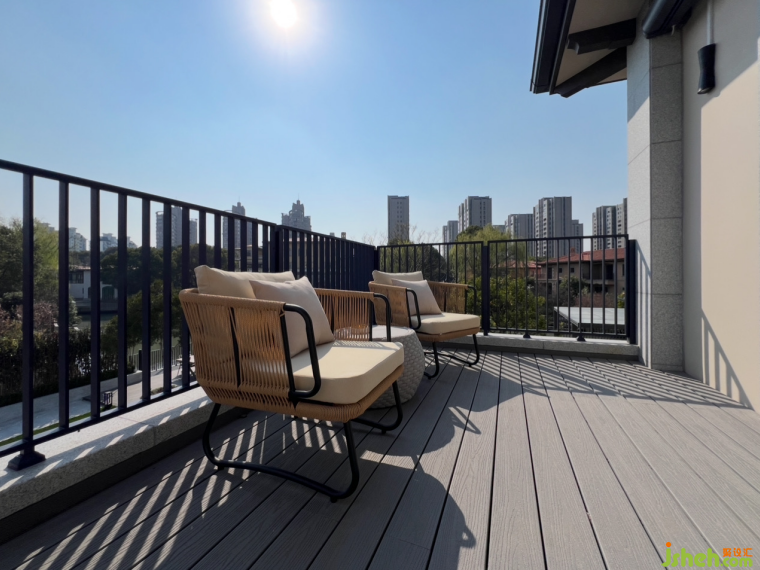 戶外花園部分,考慮南側(cè)臨河且與對岸建物距離較近,透過端景墻與高植栽的布置,營造專屬的私密花園氛圍;而西側(cè)臨水面積較大,則采用通透式欄桿設(shè)計(jì),使視野向外延伸,強(qiáng)化與自然水景的連結(jié)。此外,設(shè)計(jì)中亦規(guī)劃了戶外茶屋與休憩平臺(tái),提供居住者靜心賞景、社交聚會(huì)的多元場域。
