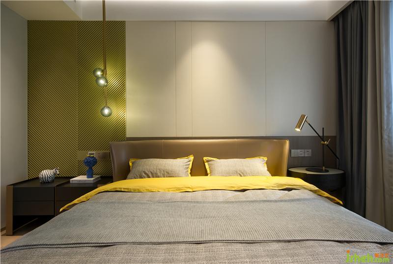 主臥室一般都具有一定的私密性、避光性,配套洗浴,靜謐舒適,與其他空間明顯的分割,是整套房子最私人的空間,完全根據(jù)業(yè)主的要求去設(shè)計。設(shè)計臥室時首先考慮的是讓人感到舒適和安靜??臻g寬敞,1.8的雙人床,同時配套有衣帽間,步入衣帽間進入衛(wèi)生間。臥室設(shè)計的核心是床和衣柜,其他的家具和擺設(shè)根據(jù)需要來添加。床頭墻面用硬包與造型墻板拼塊,簡潔,柔軟,有立體感。家具以及燈光的顏色是暖色調(diào)的。整個空間的和諧能讓人消除一天的疲勞,在柔和的環(huán)境坦然入睡。