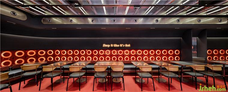 紅色從門頭蔓延至室內(nèi)墻面和地面,成為空間的主基調(diào)。杭州餐廳設(shè)計(jì)在沉穩(wěn)質(zhì)感的黑色映襯下,自內(nèi)而外散發(fā)出潮流、動(dòng)感的活力。一場感官激蕩下的嗦粉社交即將啟程。