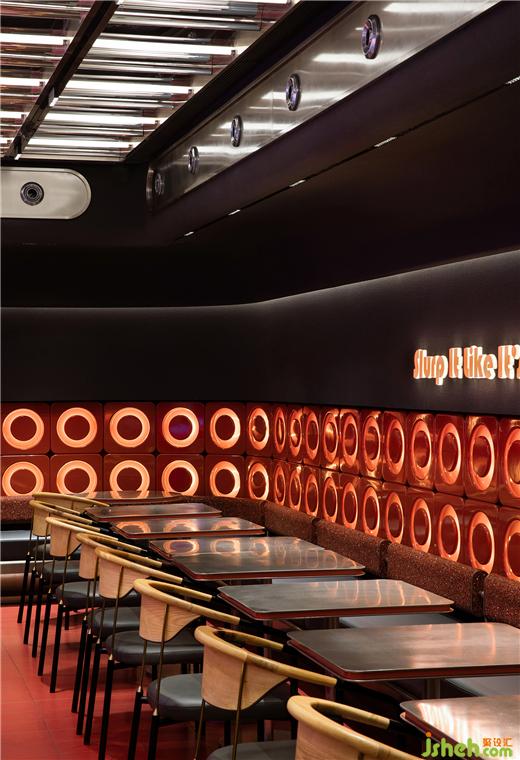 YEAP LAB將主理人身上散發(fā)的“street young soul”氣質(zhì)移情到空間設(shè)計(jì),顛覆傳統(tǒng)粉店的思路,以“迪廳”主題釋義空間故事。年輕、時(shí)尚、新潮,喚起無限活力。杭州餐廳設(shè)計(jì)釋放想象力與創(chuàng)造力的同時(shí),恰好開啟“白天Pho晚上酒”的用餐模式。這是基于品牌文化基因傳達(dá)的深層考慮,也是預(yù)測未來商業(yè)狀態(tài)的一種前瞻察覺力。