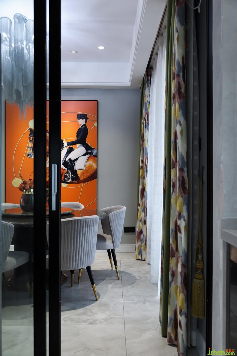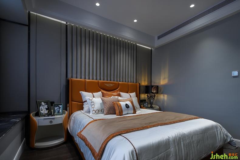 主臥作為睡眠空間,以深淺不一的灰色為基調,輔以橙色點綴,體現(xiàn)多層次的豐富內涵。室內設計師崇尚細致的體驗感,于細節(jié)處綴以藝術的飾品,不經意間觸動人心
