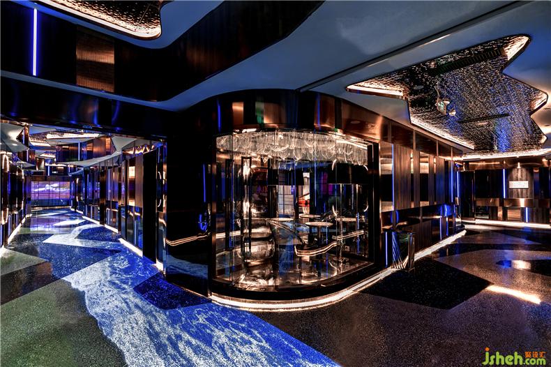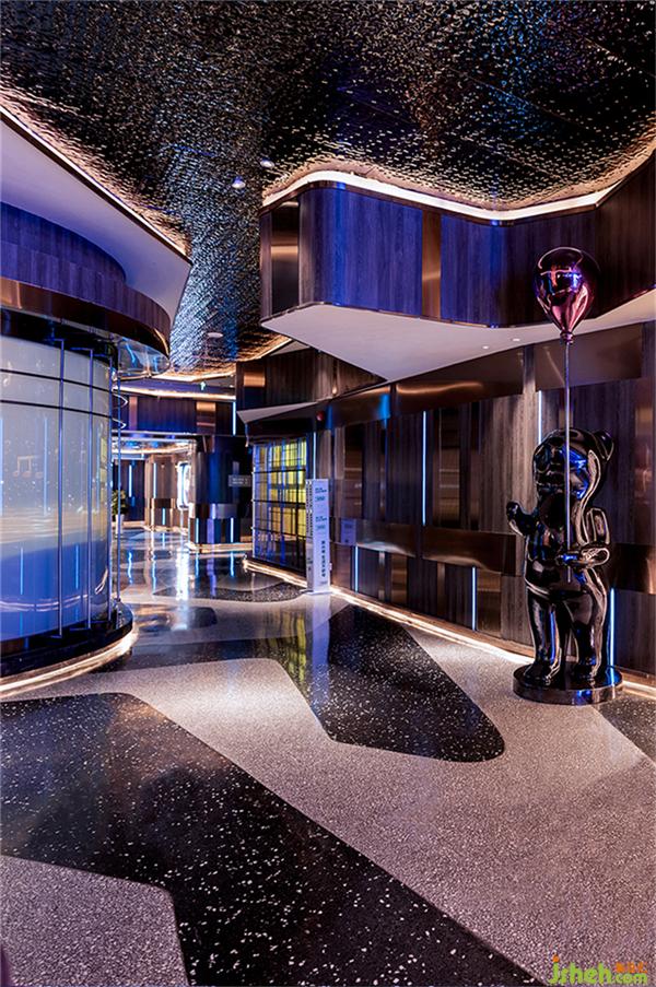 建筑大師雷姆.庫哈斯曾說,“形式不是設(shè)計(jì)的出發(fā)點(diǎn),而是創(chuàng)作的結(jié)果”。在前區(qū)入口、大廳接待、水吧、展示區(qū)及休息區(qū)、過道等公區(qū),設(shè)計(jì)師順勢(shì)于項(xiàng)目生長(zhǎng)條件,確立了疊層峽谷的創(chuàng)意理念及主題,這一主題將前區(qū)過于狹長(zhǎng)的劣勢(shì)化為了優(yōu)勢(shì)及特點(diǎn),為人們進(jìn)入正式消費(fèi)前做好了心理及情緒上的充分“前戲”鋪排。藝術(shù)裝置、多媒體互動(dòng)投影、潮玩品展示區(qū),酒吧設(shè)計(jì)皆成為峽谷漫游中的視覺、觸覺等感官景點(diǎn)(情緒交互觸點(diǎn)),在轉(zhuǎn)換消費(fèi)者緊張、焦慮、疲憊等日常情緒模式的同時(shí),不斷激發(fā)、挑動(dòng)、醞釀著即將到來的娛樂心情!