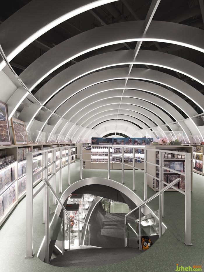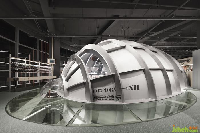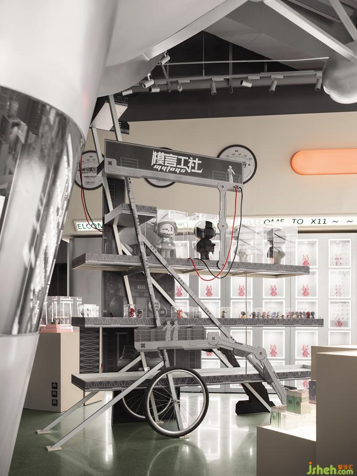 穿過樓板,巨大的飛艇懸于空中,復(fù)古的形式,未來的質(zhì)感,碰撞出全新的潮流場景。