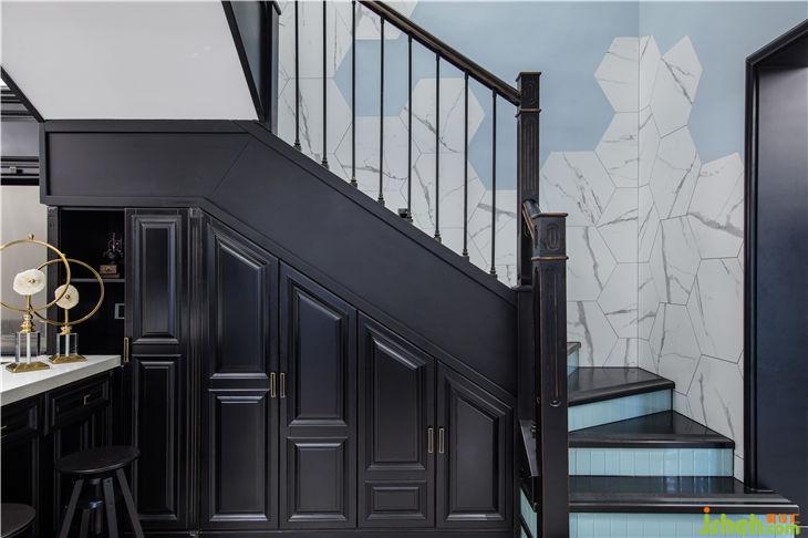 本案是一套平層與一套復(fù)試的結(jié)合,業(yè)主把兩套打通成一套使用。原本的樓梯位不動(dòng),只是將其行走動(dòng)向做了調(diào)整,踏步面比原始結(jié)構(gòu)更寬了,高度也進(jìn)行了微調(diào),更符合人體工程學(xué)。