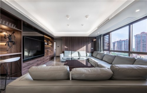 最后一個(gè)亮點(diǎn)是其270°液晶投影的設(shè)計(jì),2樓由于天生環(huán)境封閉,這樣的空間讓大部分感覺(jué)到不舒適。設(shè)計(jì)師針對(duì)這個(gè)弊端,大膽采用現(xiàn)代化投影設(shè)備進(jìn)行裝飾深圳裝修設(shè)計(jì),讓封閉的空間瞬間成為無(wú)限可能,山、湖、海、草原、落葉、飄雪,一切隨心而動(dòng)。