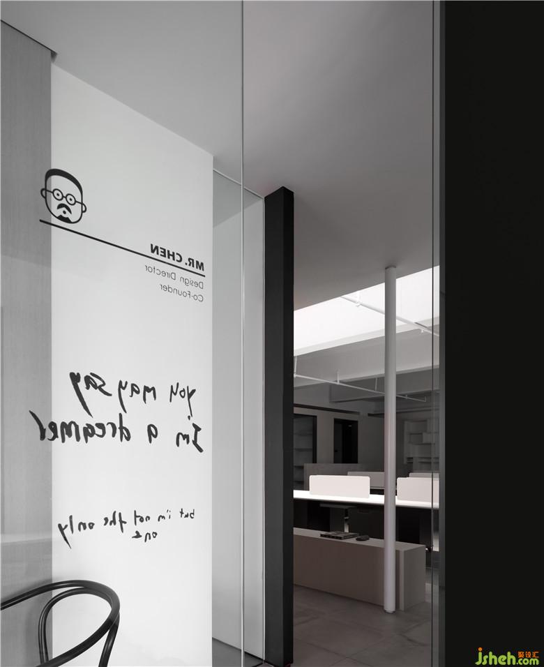 以公共工作區(qū)域的回形線路連接其他功能區(qū),灰色水泥色體塊之間的圍合,白色柱?無意中在模糊邊界,構(gòu)筑空間秩序??煞D(zhuǎn)的紅色墻是一種變化,色彩與使用者的情緒建立連接關(guān)系。紅色,在空間里承擔(dān)著某種邏輯關(guān)系,它給我們帶來驚奇。