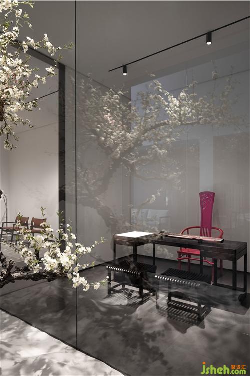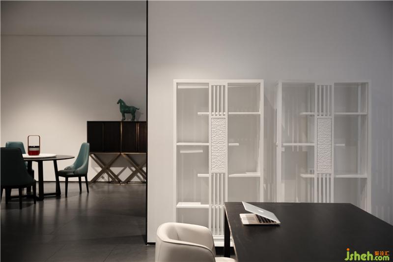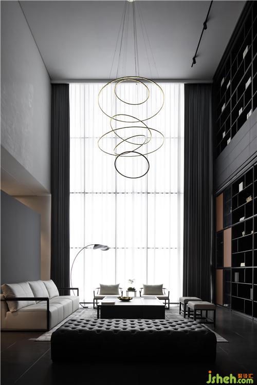 震撼的中庭挑高區(qū)域盈滿廣袤、純凈而安定的靜謐力量,一覽無疑,氣質(zhì)涌現(xiàn),將心放緩下來。上空大型圓形吊燈,高低錯(cuò)落中糅合出空間的比例之美。如雕塑般美感的白色鋼板樓梯連接上去空間,穿插于黑色空間中,用帶有邏輯的切割梳理了異材質(zhì)的沖突、重新搓揉空間的姿態(tài)。傳統(tǒng)濃重的商業(yè)氛圍于此得以弱化,在韻白的世界中打磨至美生活質(zhì)地。舍棄過多的裝飾造型,試圖利用黑白材質(zhì)的「本質(zhì)意象」去體現(xiàn)一個(gè)空間的風(fēng)格及層次。只需身在場(chǎng)域之中,便能體會(huì)其柔軟、強(qiáng)烈、安靜、亦或神秘;材質(zhì)線條于無形中界定了空間,形塑出一個(gè)全新、當(dāng)代的空間想象。
