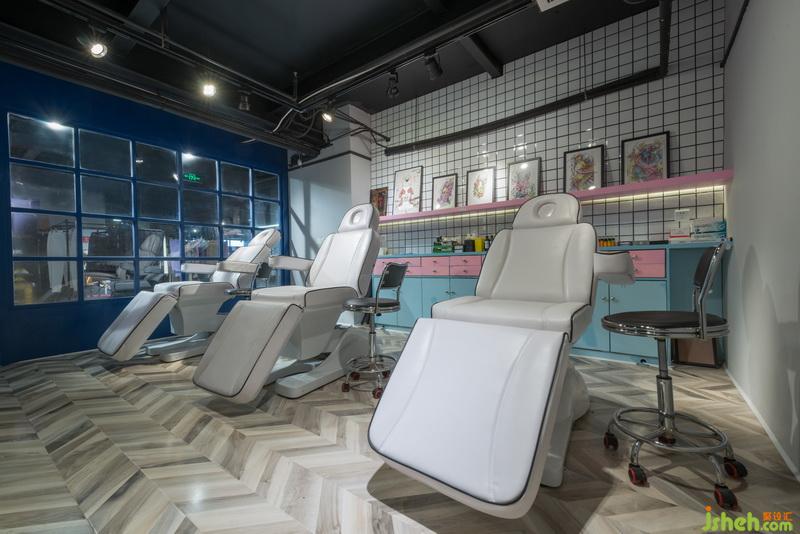 紋身椅的設(shè)計充滿未來感,黑色線條和大面積白色相接,簡潔流暢。室內(nèi)設(shè)計師