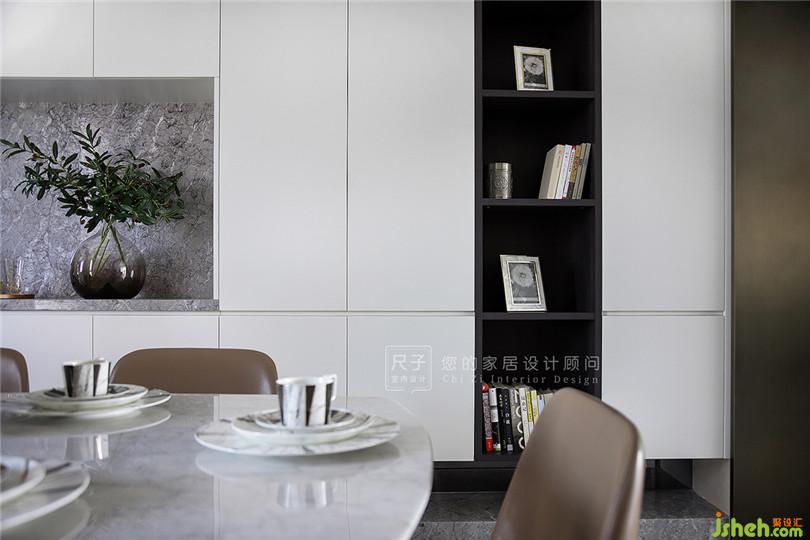 借用餐邊柜部分空間做的大理石臺(tái)面,成了業(yè)主烹茗煮茶,方便備餐的區(qū)域。
