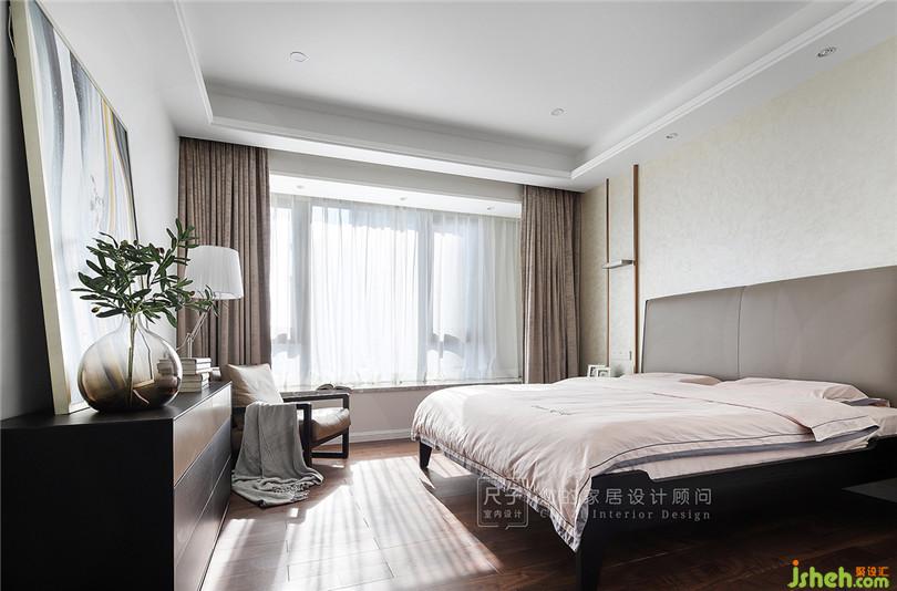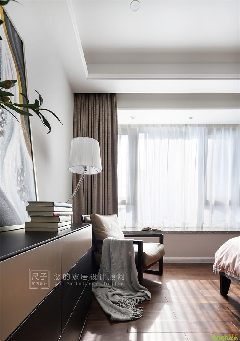 主臥追求讓居住者身心放松的效果;沉靜的灰色,給臥室營造高雅、靜謐的氛圍。