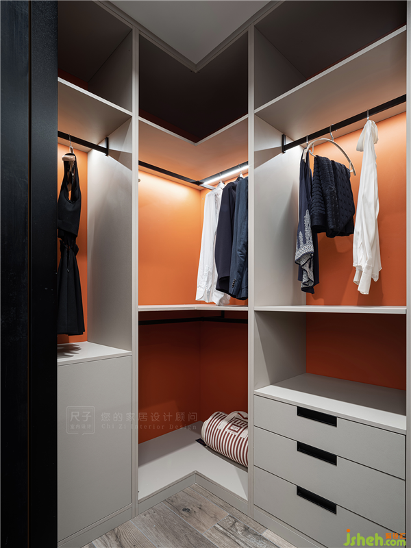 調(diào)整原結(jié)構(gòu)中主臥入門處的格局,大大提高了衣帽間的使用面積。