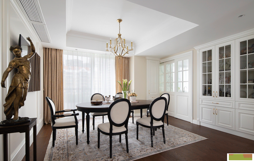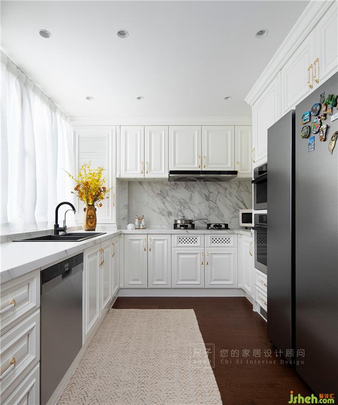 純凈的白色柜體與深色地板搭配,既穩(wěn)重又有清澈之感。