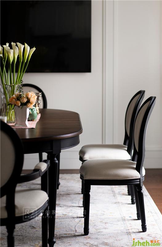 餐廳與廚房通過半通透的推拉門打通,除了在視覺上顯得開闊大方,更是促進了家人、朋友間的交流聯(lián)系。