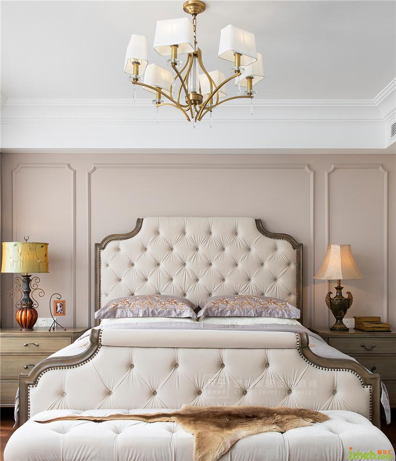 溫暖的米咖色配色,以及極具美式線條感的床具,搭配花色地毯、沙發(fā),沉穩(wěn)中又不乏活力,給人一種張弛有度的休閑感。