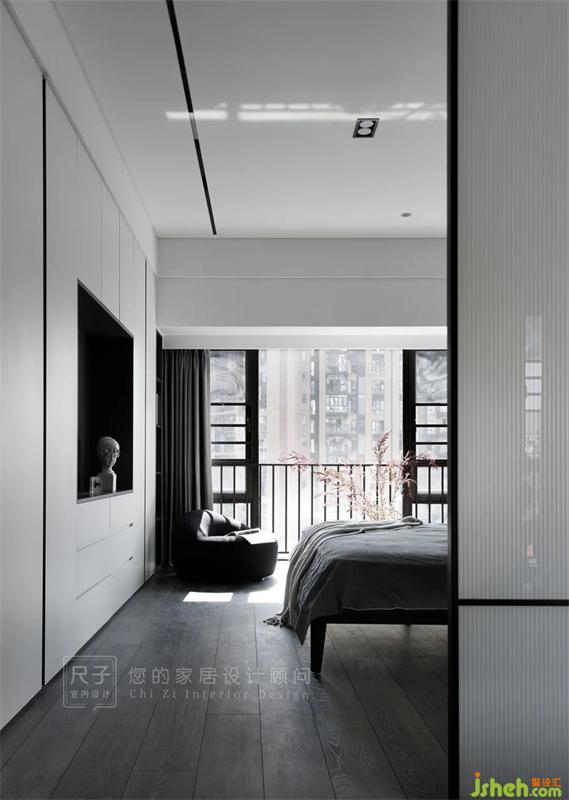 通往主臥的過(guò)道被靜謐的木色包裹,裝修設(shè)計(jì)從客餐廳到主臥形成自然地過(guò)渡,天花的格柵造型,進(jìn)一步豐富了空間的視覺(jué)表現(xiàn)。