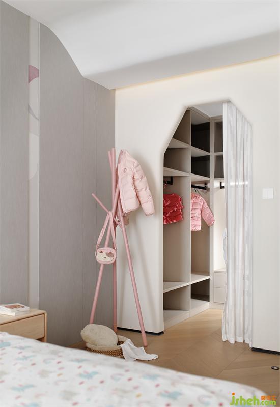 小孩們的生活不是一成不變,家具擺放也時常發(fā)生變化,深圳家裝設(shè)計通過淡淡的粉和灰色調(diào)、軟裝、墻紙的搭配來體現(xiàn)一些兒童化屬性,不做過度的裝飾限制小孩房未來發(fā)展的可能性。